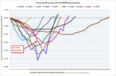 As economy slowly takes hold and begins to recover, investors' jittery on inflation will immediately surface, and this will push up long-term interest rate on, say, 10-year T-note. The Fed has the choice of raising short-term interest rate, the Fed funds rate, to lower investors' inflation expectations. But inside FOMC there will be a huge debate: a lot of people who worry about raising interest rate too soon will criple the nascent recovery, will ask Bernanke to stay put; otherwise, it will drag the economy down back into water again. The Fed will hestiate, hesitate and debate back and forth, until they suddenly realize inflation expectations begin to get out of control. What we will end up with is a slow recovery (due to this extraordinary asset/debt bubble) and high inflation at the same time. What is this called? Yes, "stagflation"!