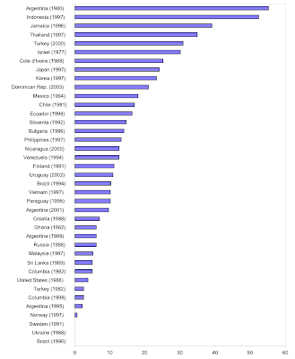 Figure 1. Net fiscal costs from systemic banking crises, 1970-2007, per cent of GDP.