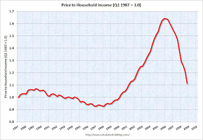But the drop of price-to-rent ratio may be due to rising rents, as more people switched to rental in this depressing market. So we now look at price-to-income ratio. You actually find the similar story: historical average is at 1.0, now we are at 1.1. Almost there.